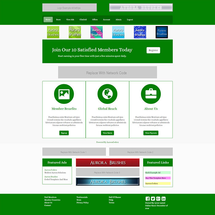 This template will only work as is for Aurora Coderz Deluxe 2.6 and later versions.