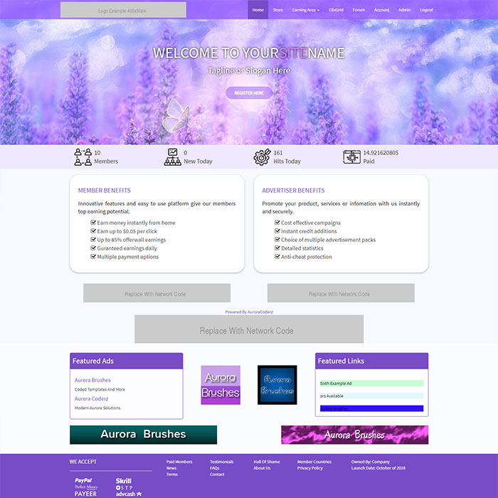Backlink removal - if you wish to remove the "Template by Aurora Brushes" in the footer you must pay the backlink removal fee.